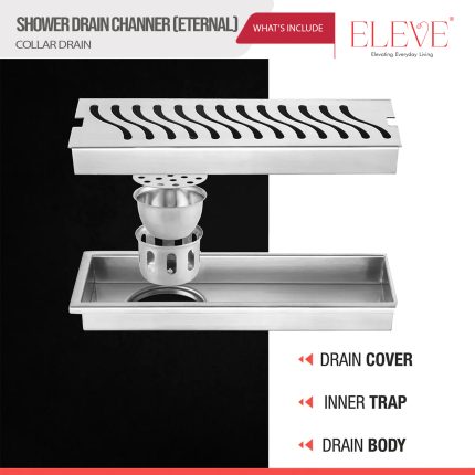 The ELEVE Eternal 12”x4” Collar Shower Drain is crafted from premium 304 stainless steel with a modern wave-pattern cover. Designed with a built-in collar for secure installation, it ensures efficient water drainage, durability, and a sleek hairline finish—perfect for contemporary bathrooms.
